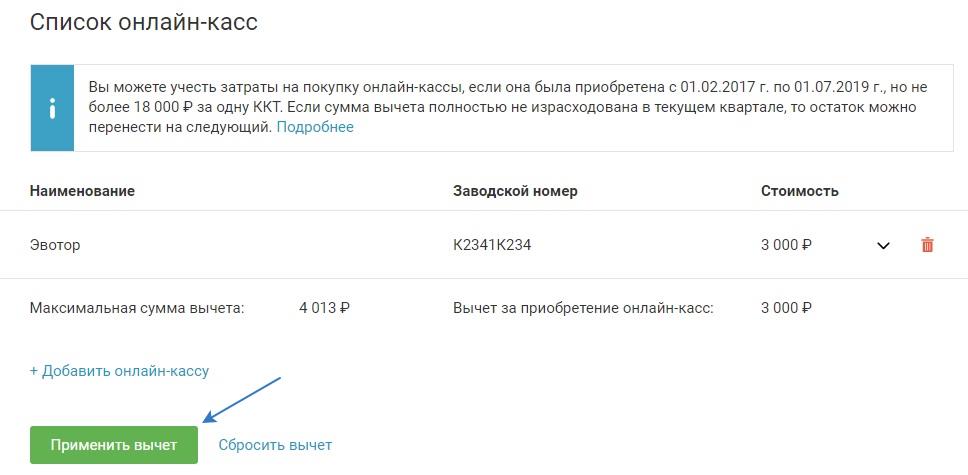 После добавления всех касс нажмите кнопку «Применить вычет» .