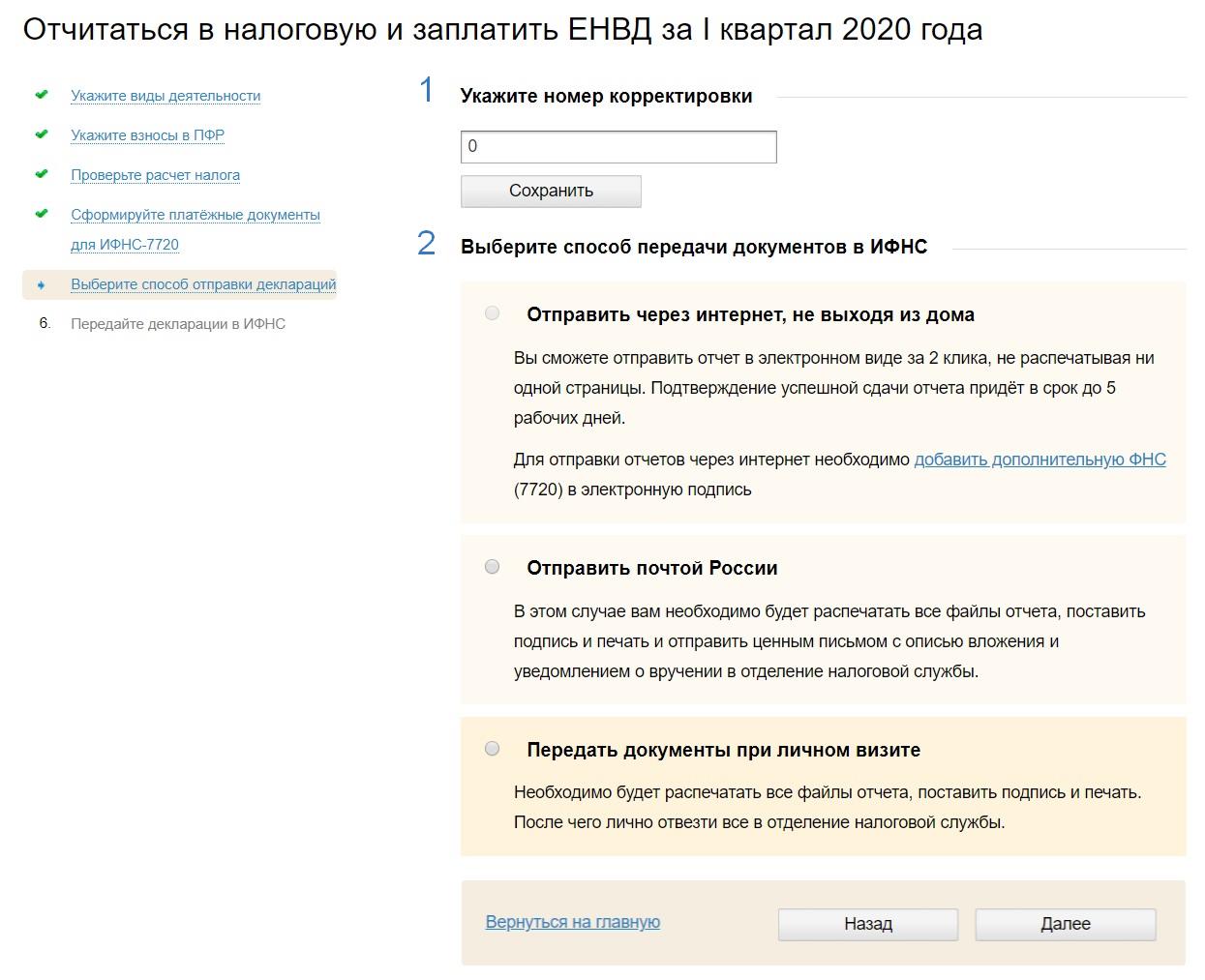 Если за данный квартал отчет отправляется впервые, или он уже подавался, но не был принят в налоговой (выставили отказ), тогда в пункте «Укажите номер корректировки» оставляйте 0. Если вы вносите изменения в уже принятый за этот квартал отчет, или в отчет, по которому налоговая попросила уточнения, указывайте номер корректирующего отчета начиная с 1.