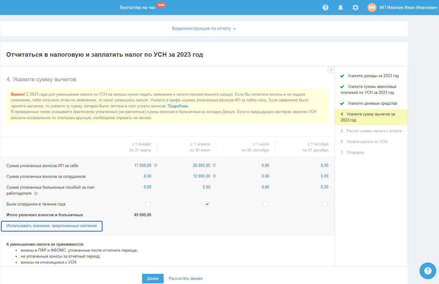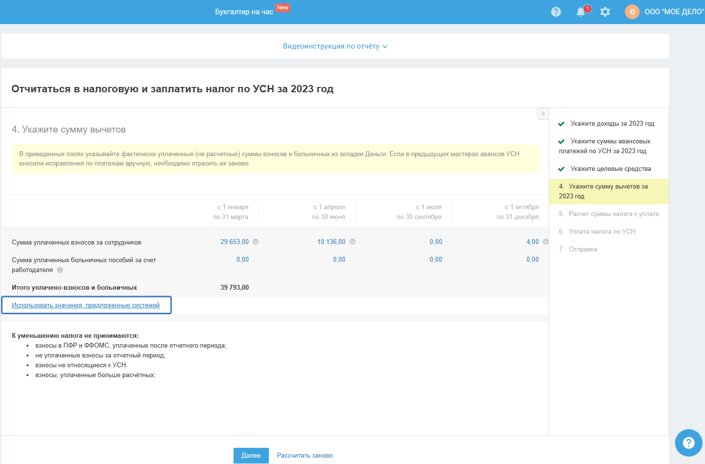 Данный шаг актуален для тех, у кого УСН с объектом «доходы». При УСН «доходы минус расходы» данного шага нет.