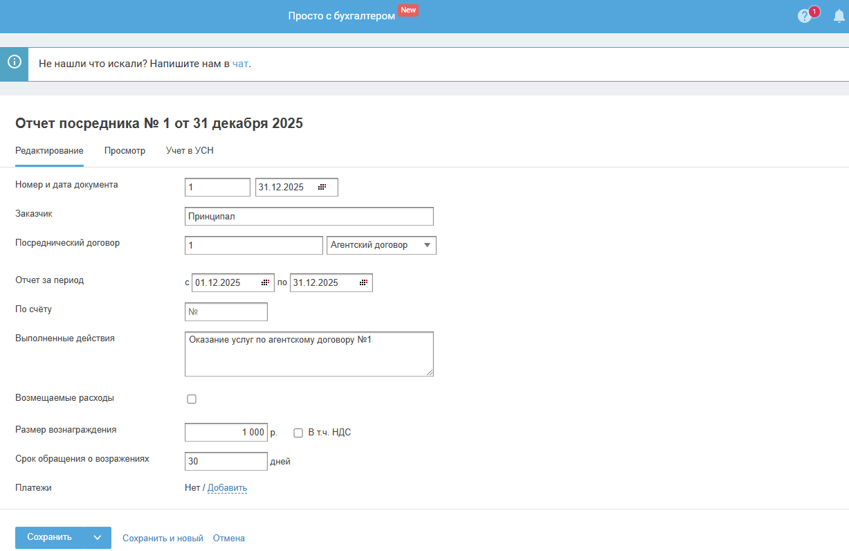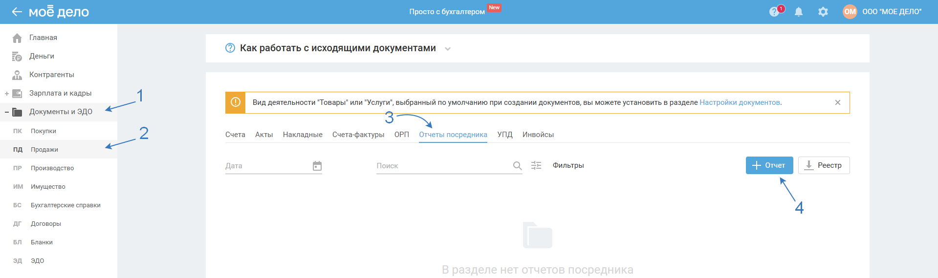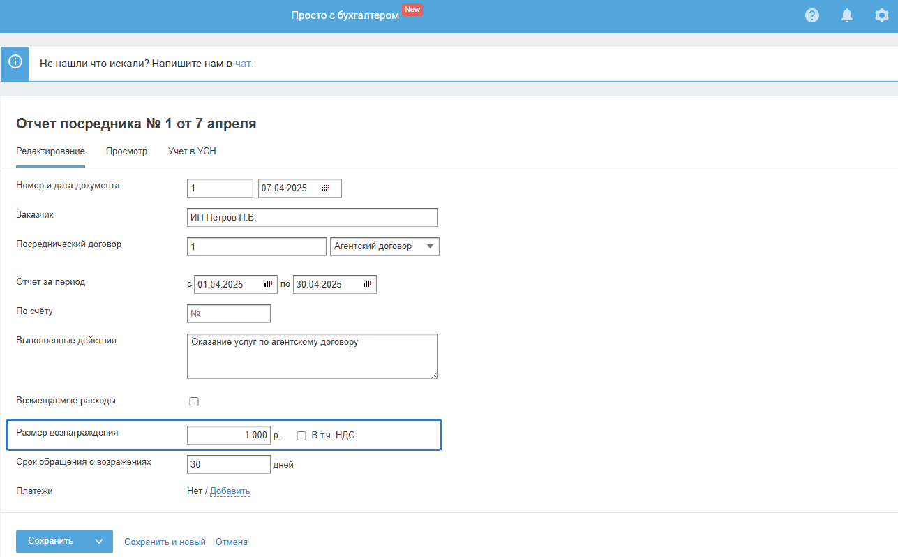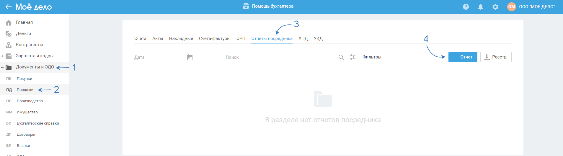 3) Создайте отчёт посредника на своё вознаграждение (см. пункт Отчёт посредника и далее по инструкции).