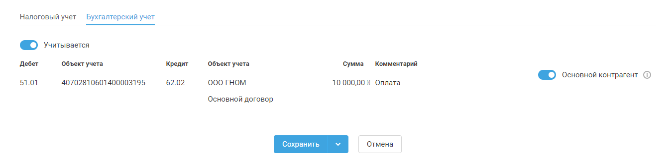 Налоговый и Бухгалтерский учёт проставляются автоматически.