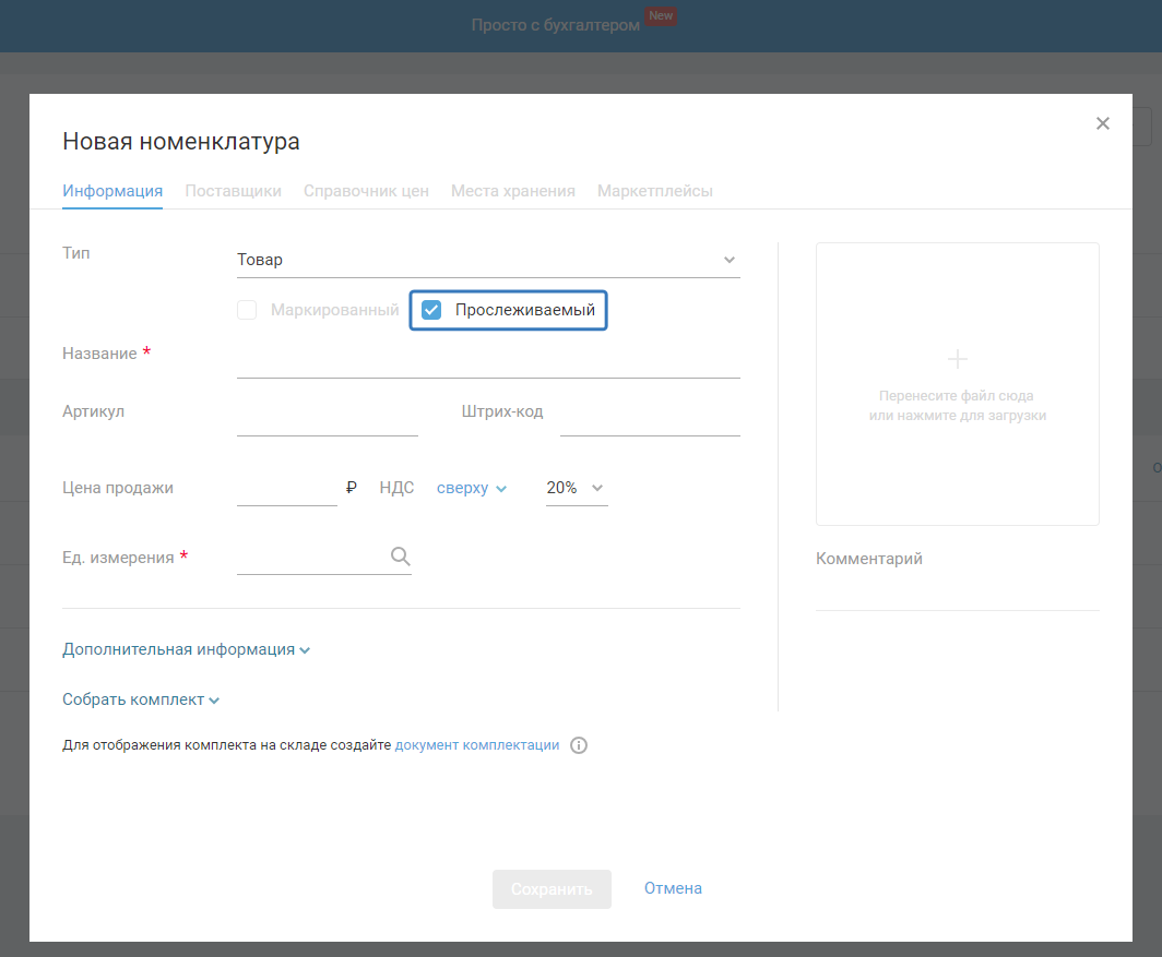 Укажите в карте товара/материала, что он является прослеживаемым: