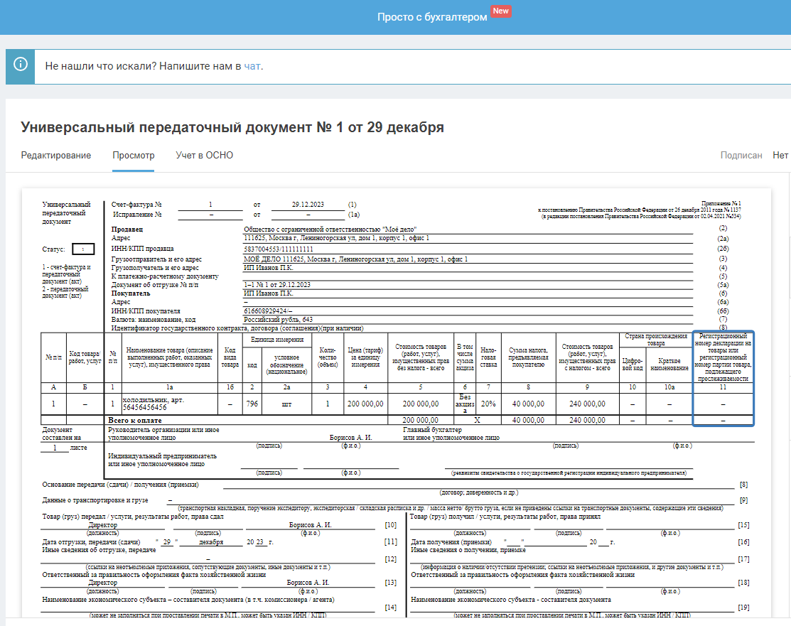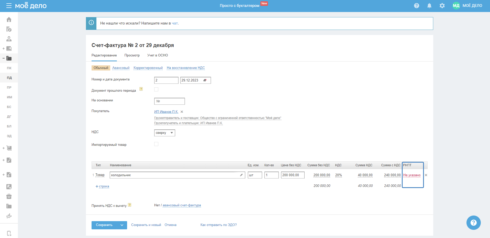 Распечатывать или дублировать его на бумаге не нужно. Выставить их нужно даже в том случае, если покупатель не является плательщиком НДС или освобождён от обязанностей налогоплательщика.