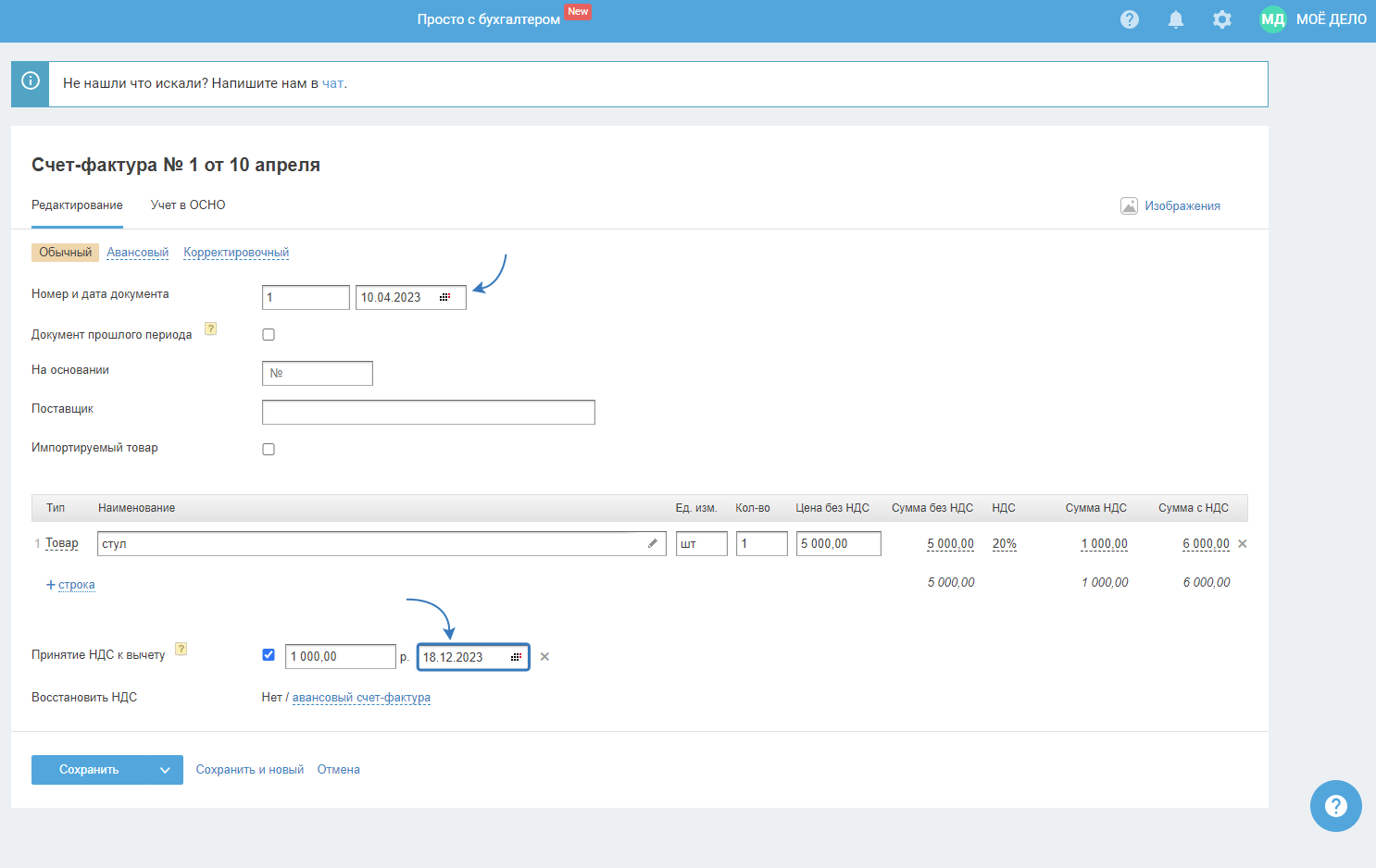 Для того чтобы принять входной НДС к вычету, например, во 2 квартале 2023 г., зайдите в раздел «Документы и ЭДО — Покупки — Счета-фактуры» и в тех из счетов-фактур, где по строчке «Принять НДС к вычету» не стоит галочка или стоит, и указана дата принятия НДС к вычету, приходящаяся на 2 квартал 2023 г., поставьте её и укажите дату принятия НДС к вычету, приходящуюся, например, на 3 или 4 кварталы 2023 г. Сохраните.