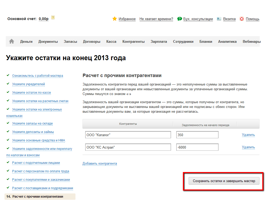 Этот шаг мастера последний. По итогу ввода, обязательно нажмите на кнопку "Сохранить остатки и завершить мастер".