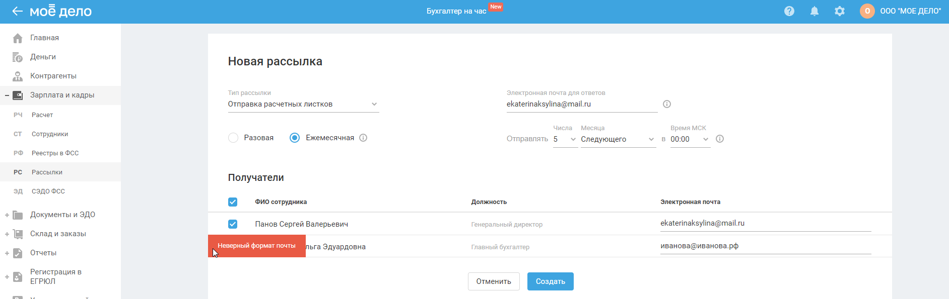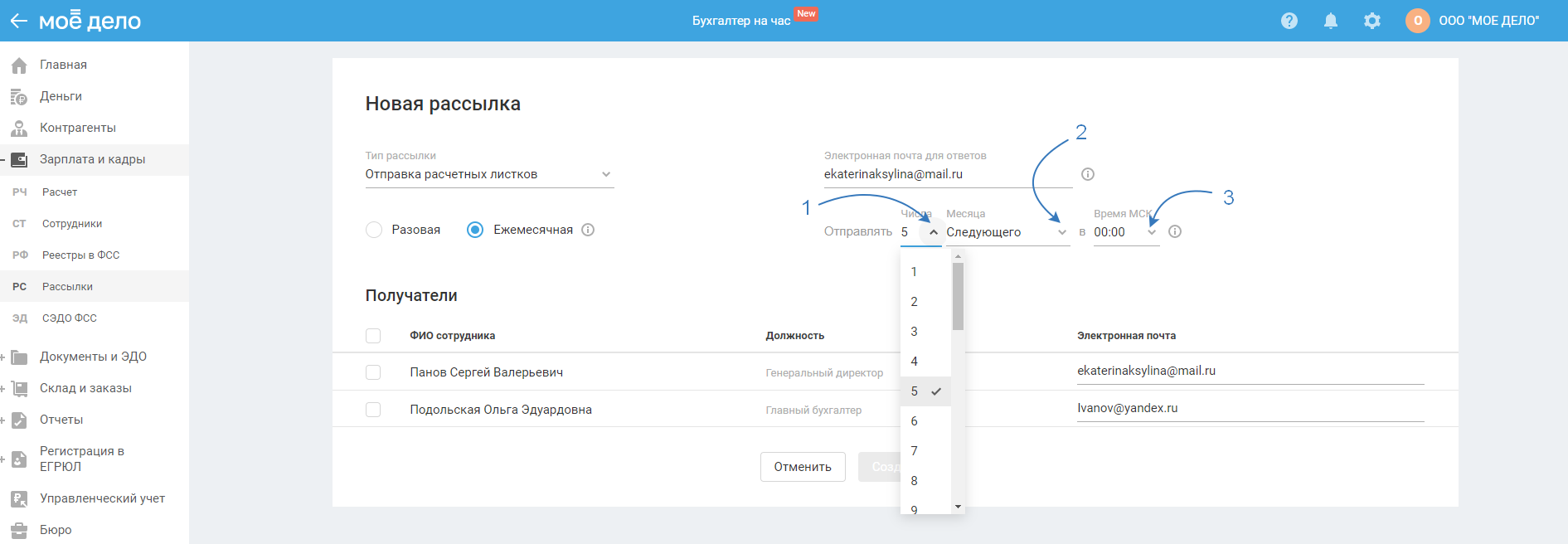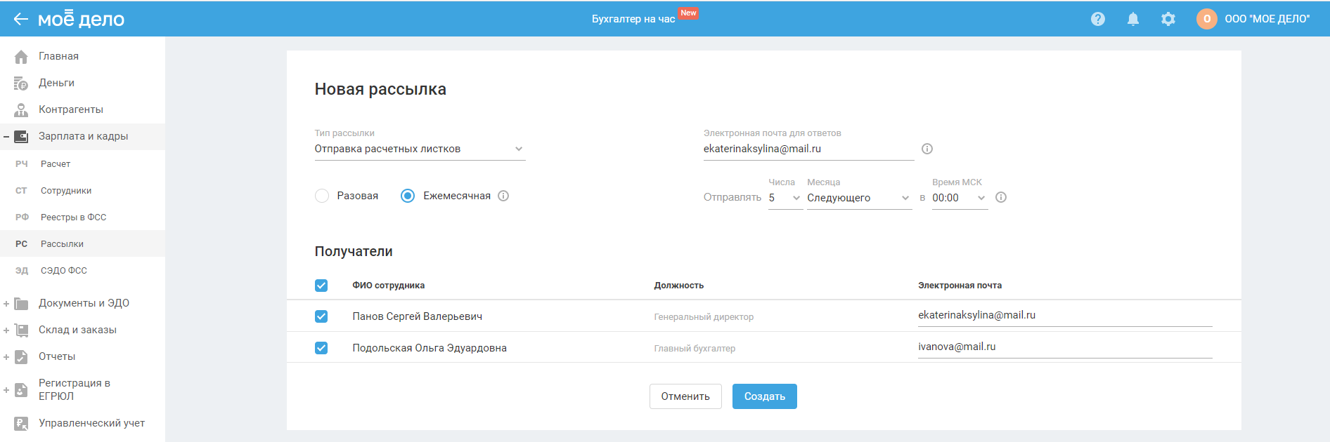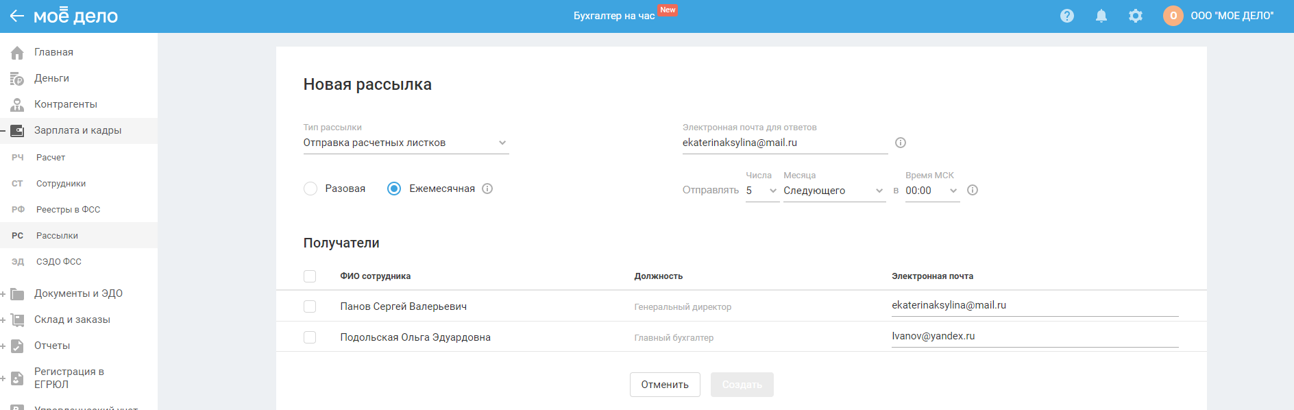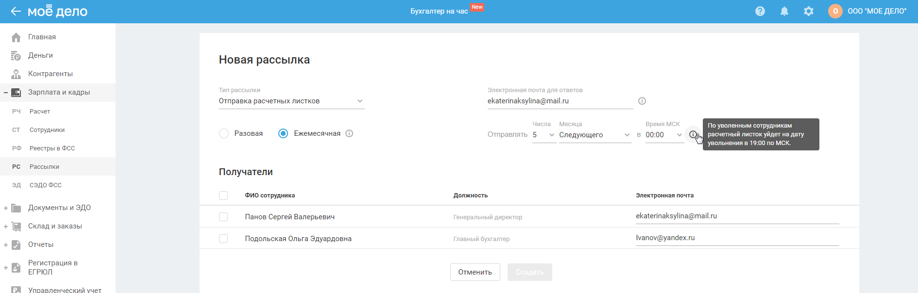 Создание ежемесячной рассылки расчётных листков