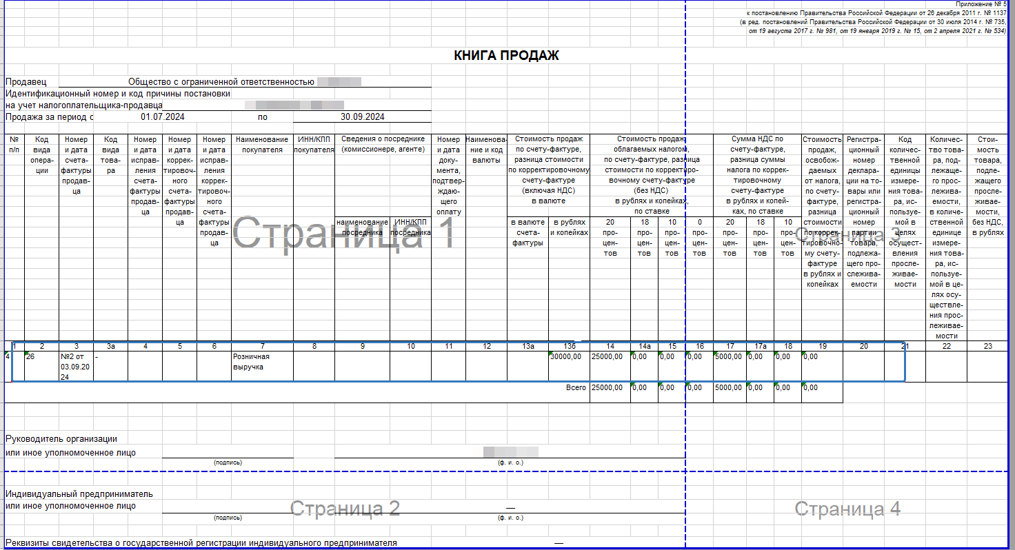 Проверить книгу продаж вы можете в мастере декларации НДС и в разделе «Отчёты, письма, требования — Создать отчёт — Книга продаж».