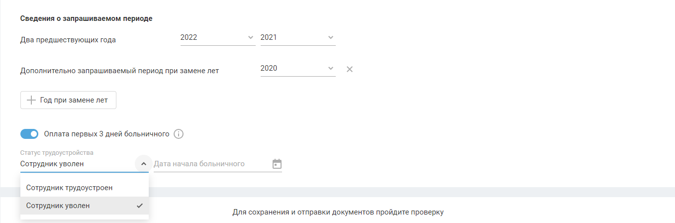Оплата первых 3 дней больничного — включите настройку, если запрашиваете сведения только для оплаты первых 3 дней больничного за счёт работодателя.