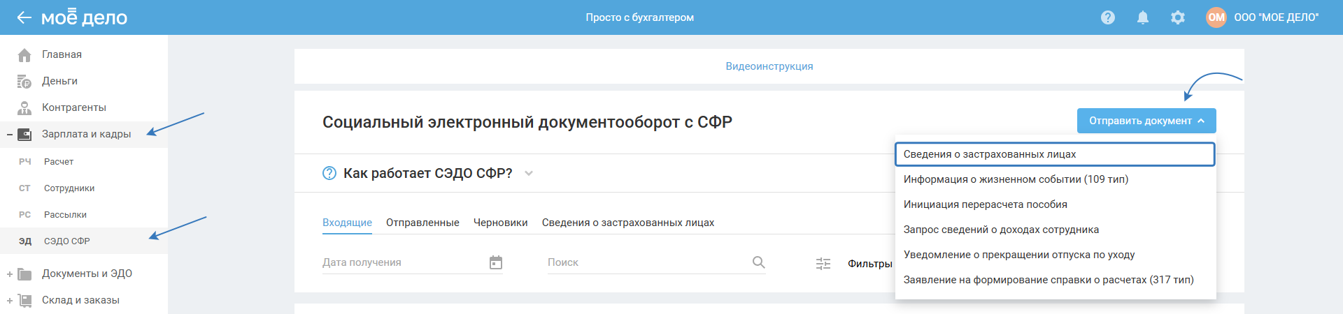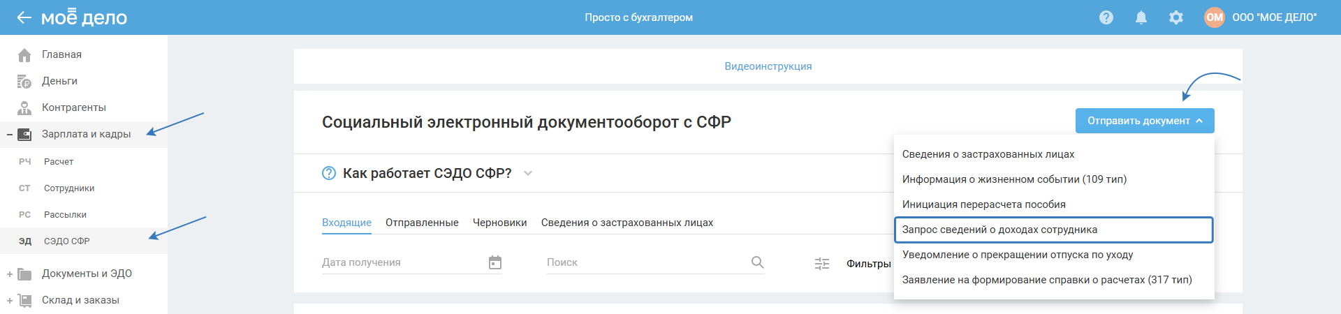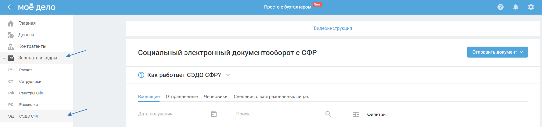 1. Перейдите в раздел «Зарплата и кадры — СЭДО СФР».