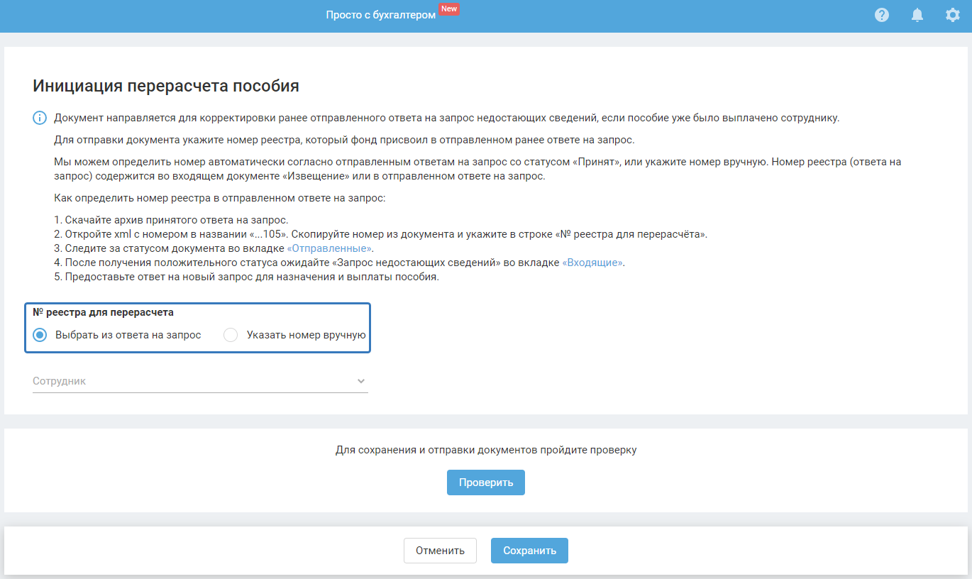 Документ «Инициация перерасчёта пособия» направляется для корректировки ранее отправленного ответа на запрос недостающих сведений, если пособие уже было выплачено сотруднику.
