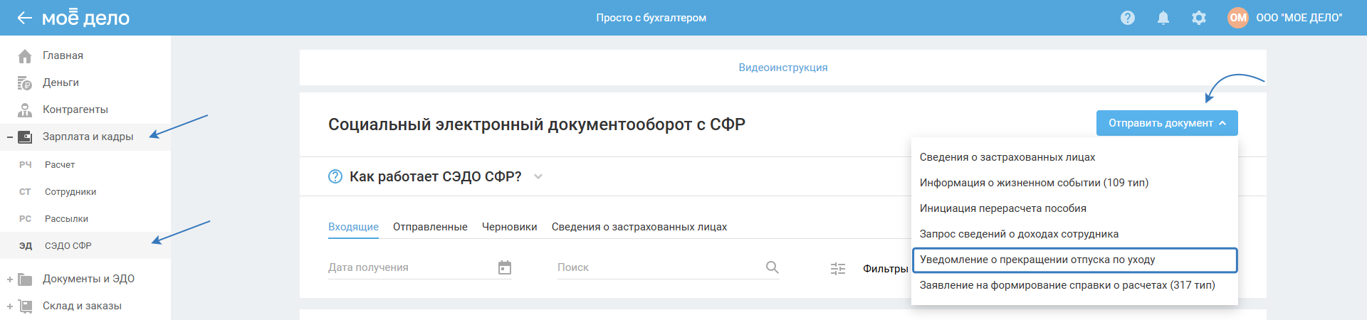 Сервис «Социальный электронный документооборот» (СЭДО) используют с 2022 года для назначения и выплаты пособий сотрудникам. С помощью него работодатель получает от СФР информацию о выданных больничных, отслеживает их статусы (продлён, закрыт, аннулирован) и обменивается документами с фондом.