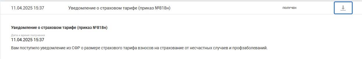 Чтобы скачать архив документа из СФР, нажмите на значок скачивания.