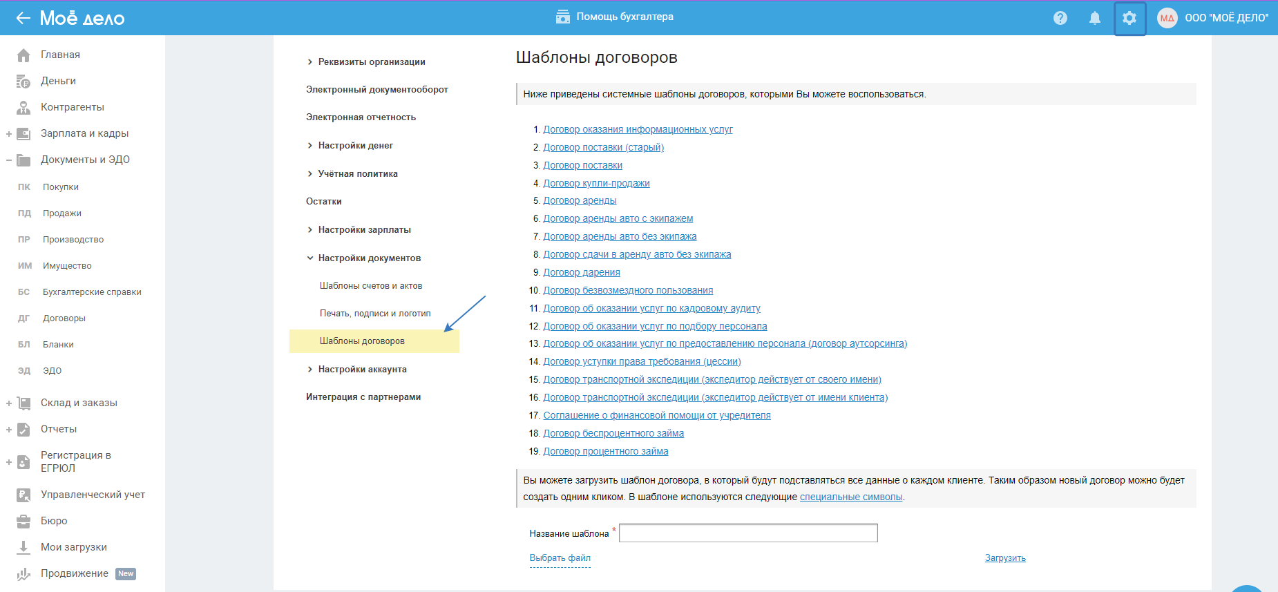 Загруженные вами шаблоны договоров будут отражаться в этом разделе.