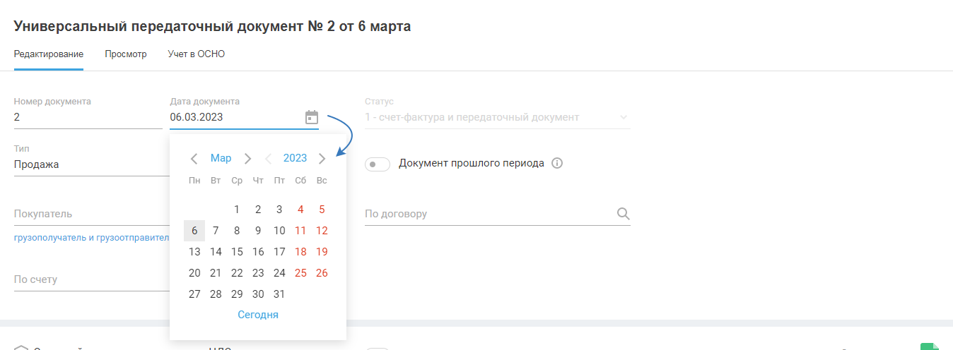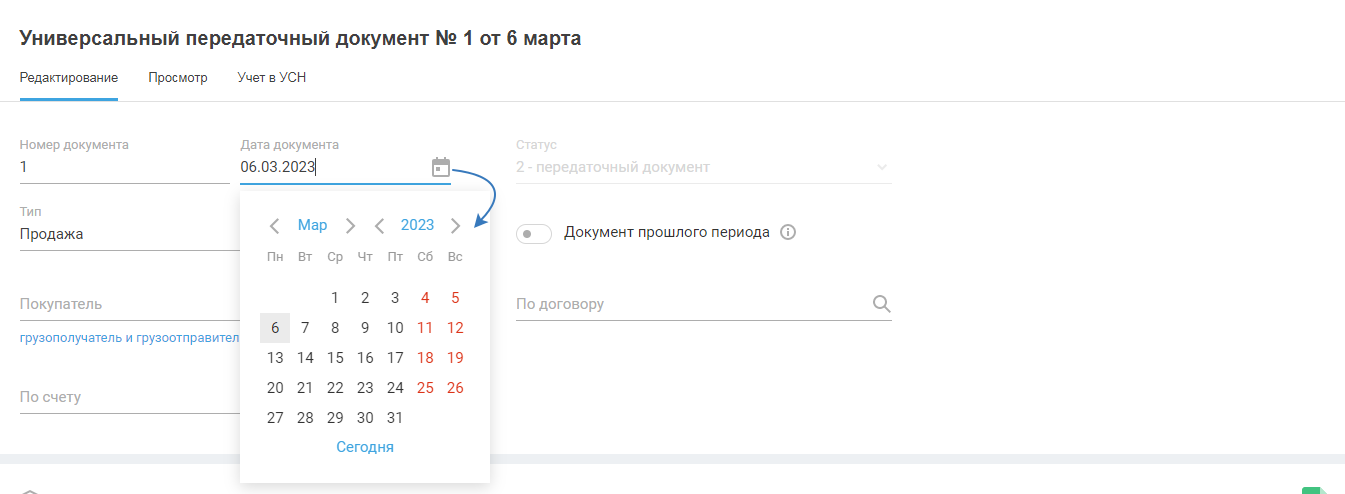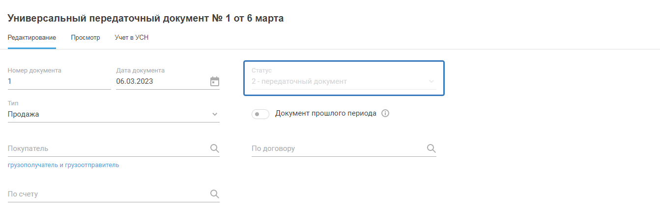 Или перейти из режима «Просмотр» (если УПД ранее был создан):