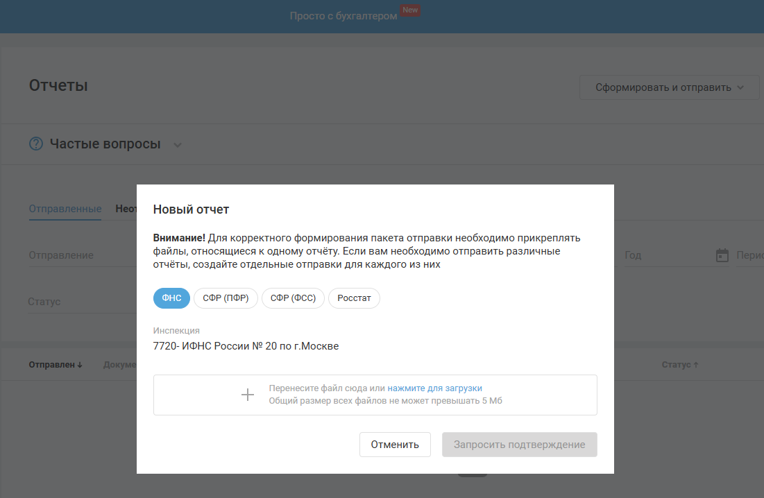 В открывшемся окне выберите «ФНС» и загрузите файлы: