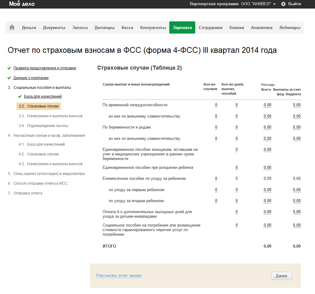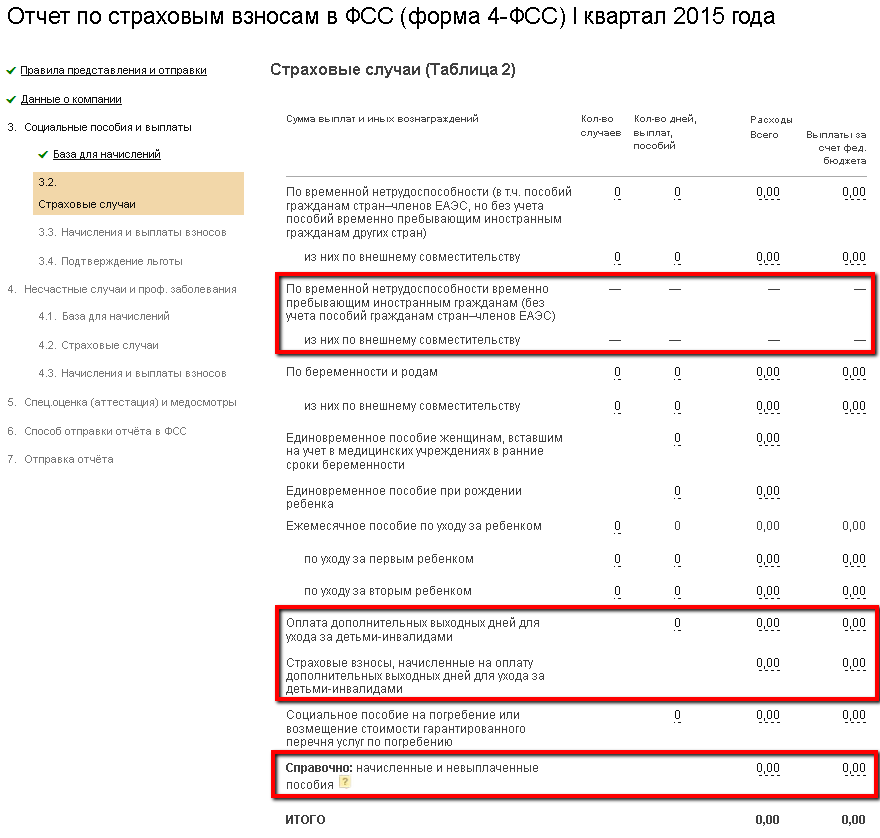 На шаге 3.2 отражаются все выплаченные пособия сотрудникам, такие как больничные, декретные, единовременные пособия, по отпуску по уходу за ребенком и т.д.