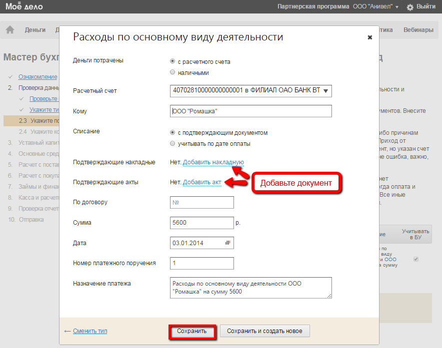 Вам необходимо будет выбрать операцию из списка, и нажать на нее. В открывшемся окне необходимо будет указать подтверждающий документ. Сохранить изменение.