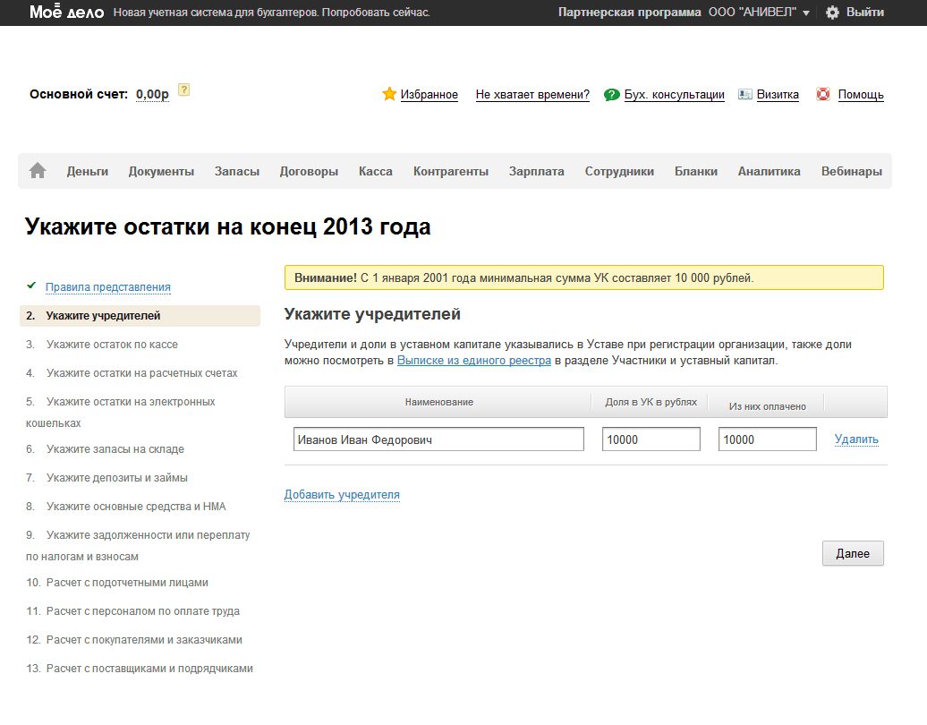 Шаг 2. Укажите учредителей