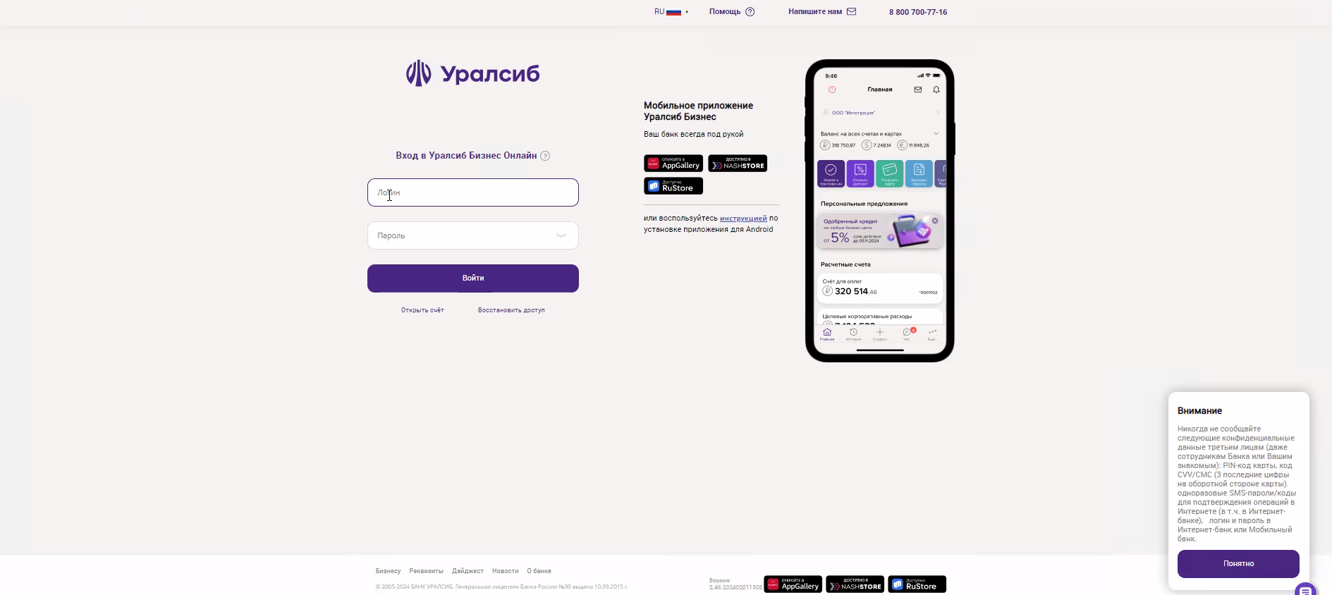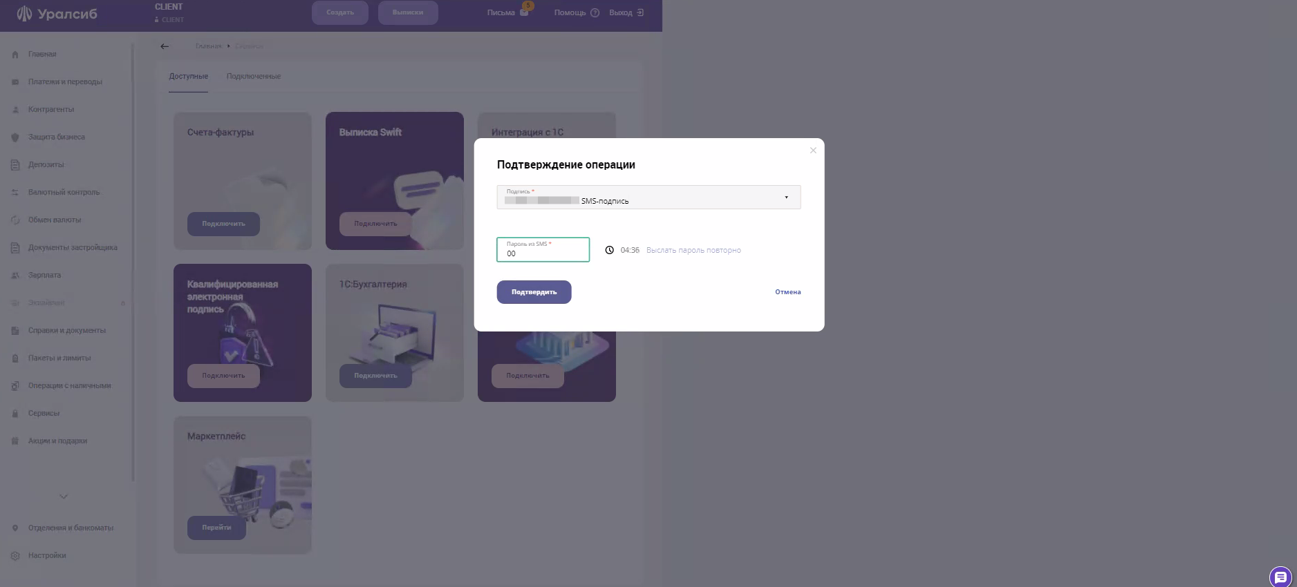 Интеграция доступна пользователям, использующих для подписания заявлений в банке методы PayControl, СМС или Рутокен.