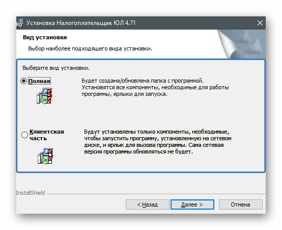 В программе установки можно выбрать вид установки — рекомендуется «Полная»:
