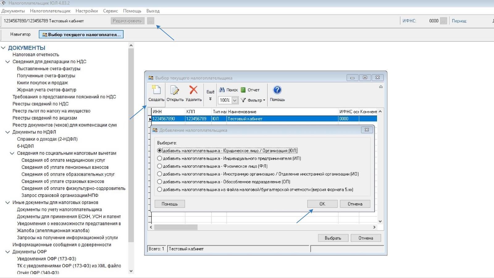 При первом сеансе работы с программой необходимо выбрать тип плательщика: