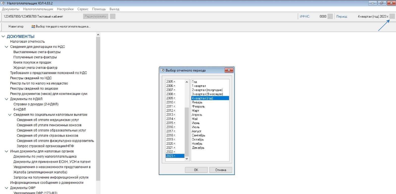 Установите период для формирования отчётности, за который будете отчитываться (в правой части окна):
