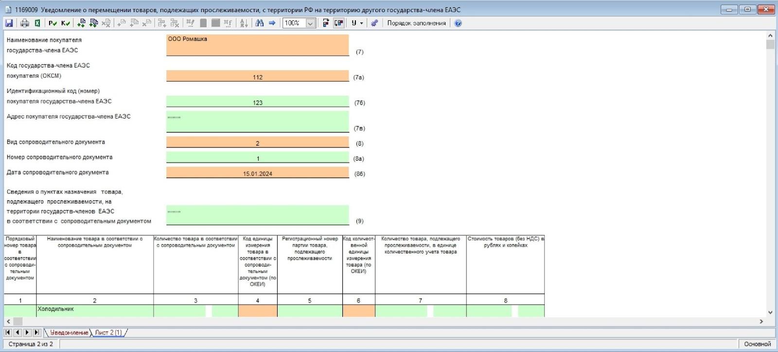 - Наименование — Уведомление о перемещении товаров, подлежащих прослеживаемости, с территории РФ на территорию другого государства-члена ЕАЭС.