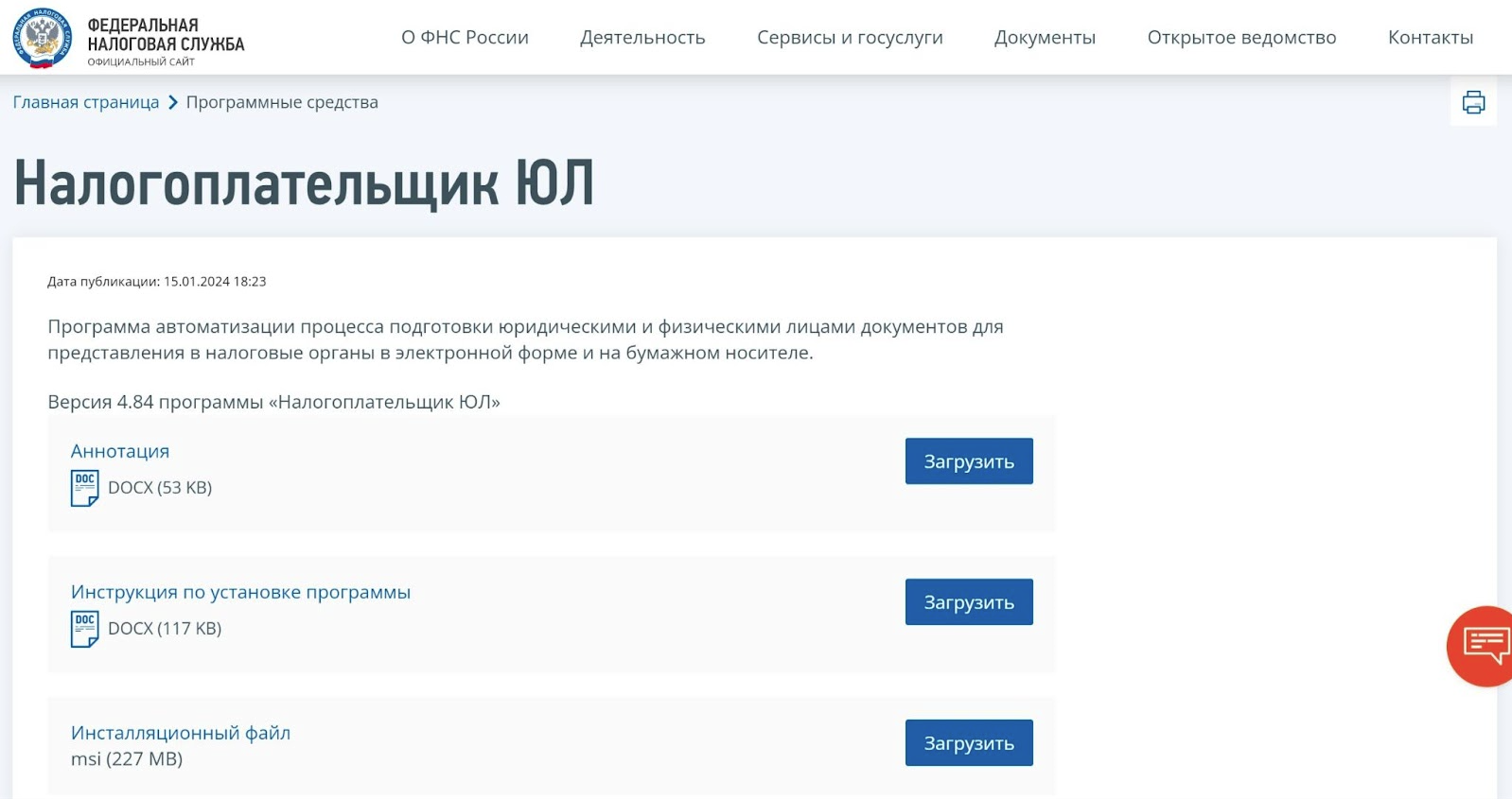 1. Для начала работы скачайте программу «Налогоплательщик ЮЛ».