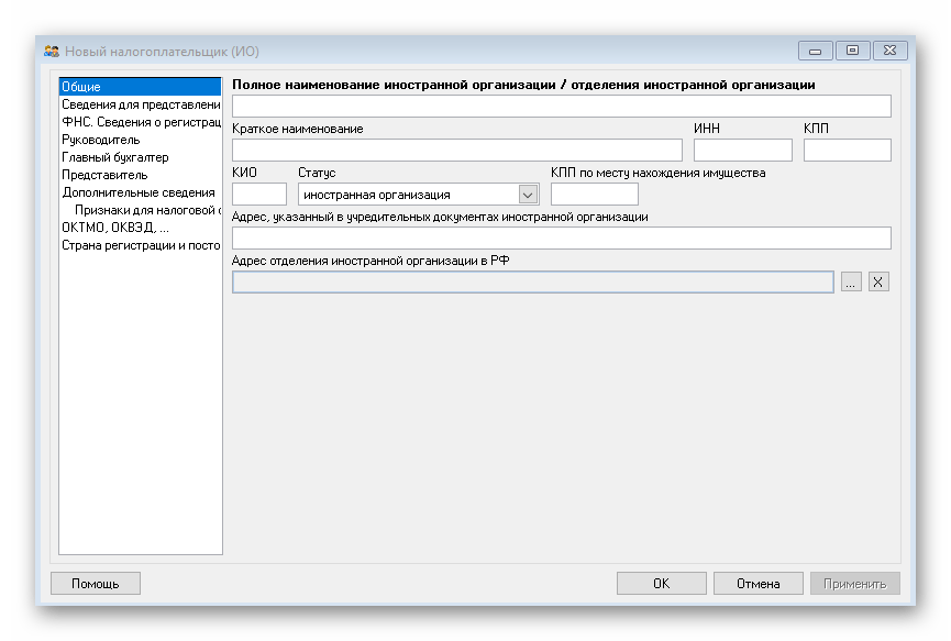 При первом сеансе работы с программой необходимо выбрать тип плательщика: