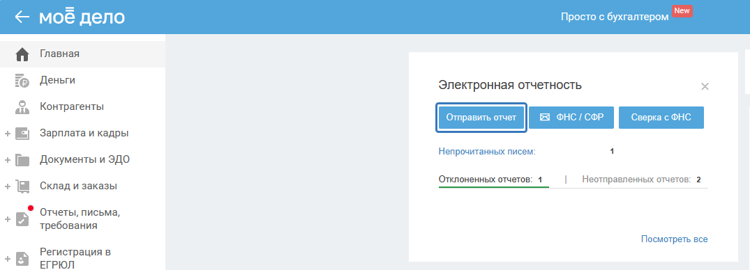 Все отправленные отчёты вы можете посмотреть в разделе «Отчёты, письма, требования — Отчёты».