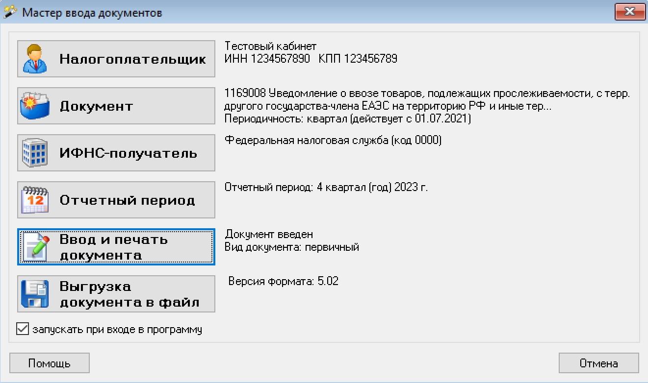 Отчёт об операциях с прослеживаемыми товарами формируется в программе «Налогоплательщик ЮЛ». Версия программы 4.73.1 и выше.