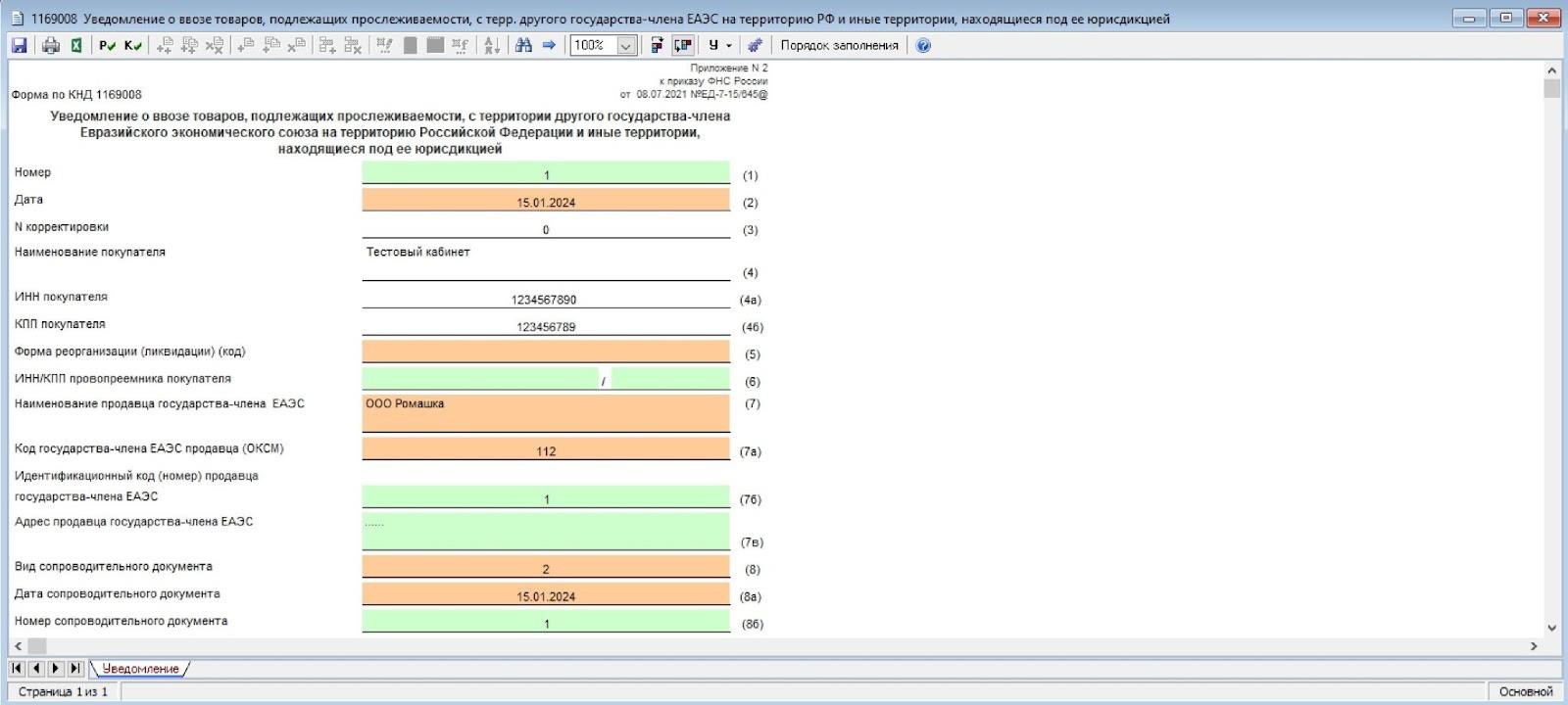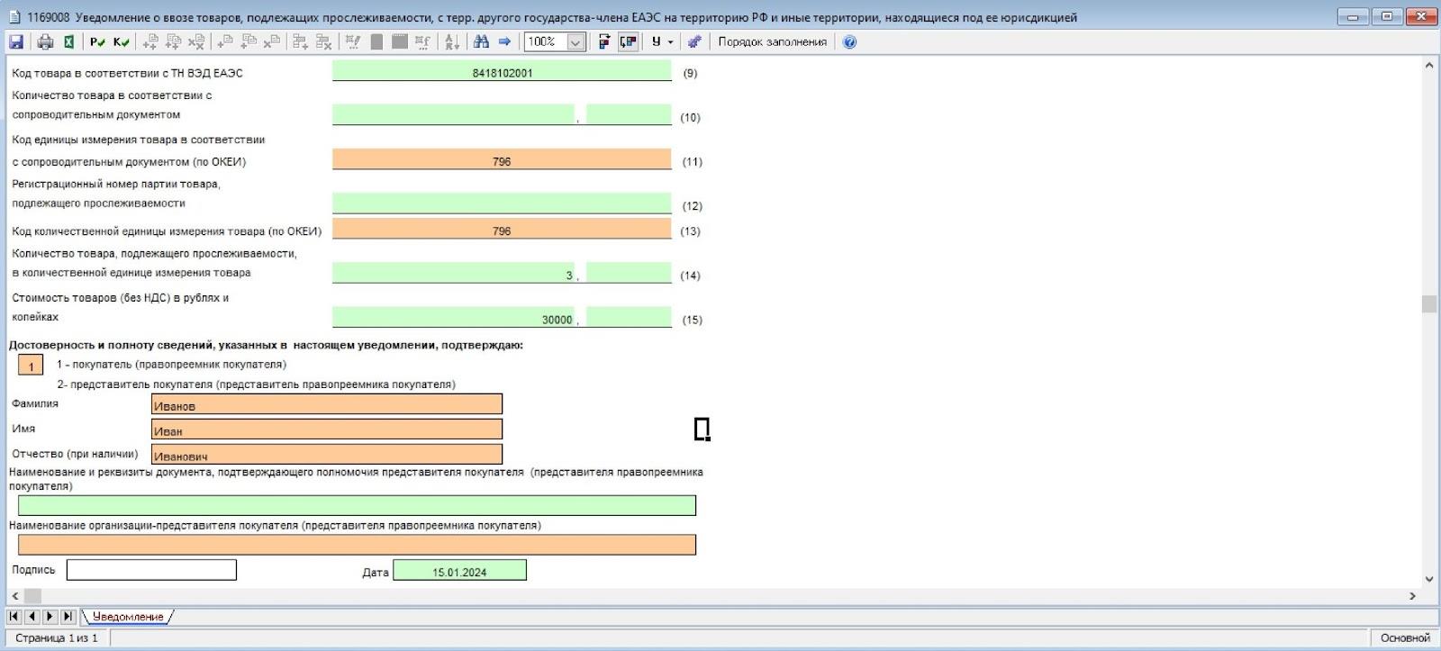 Уведомление о ввозе товаров, подлежащих прослеживаемости, с территории другого государства-члена ЕАЭС на территорию РФ