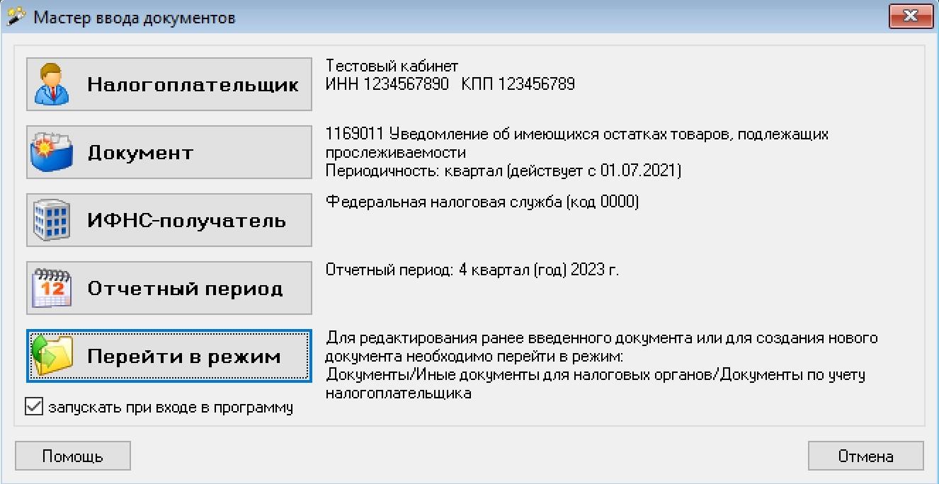 Перейдите в мастер ввода документов: