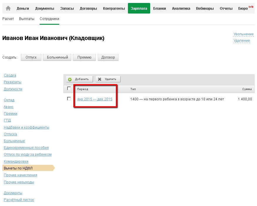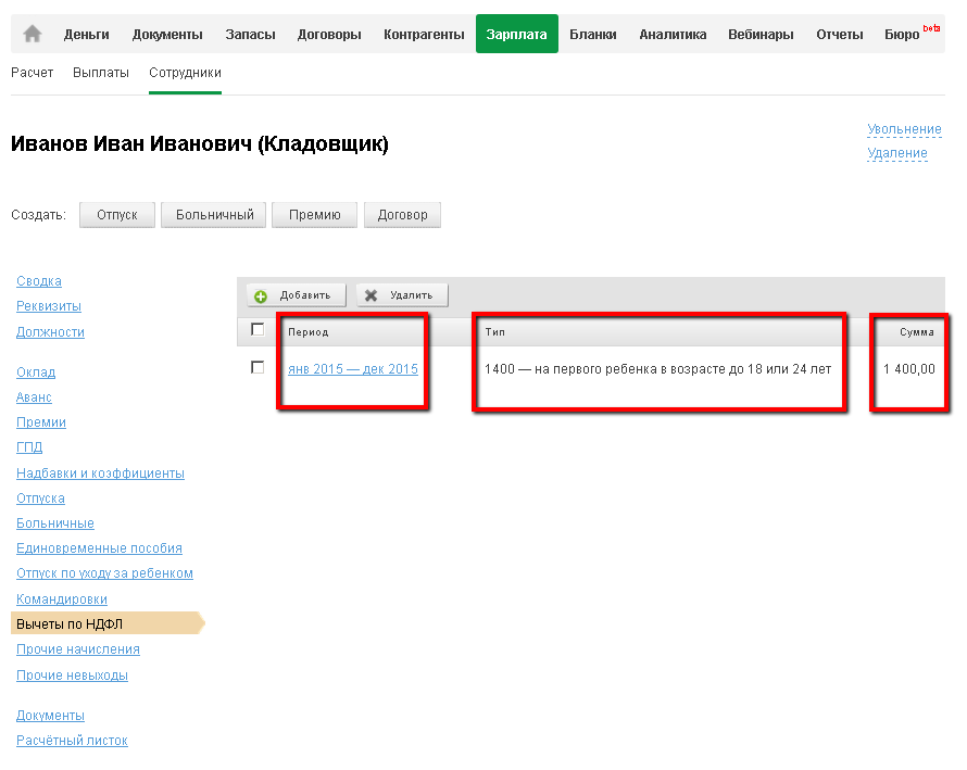 -период действия - укажите период времени, в течение которого сотрудник имеет право на получение данного вычета по НДФЛ.